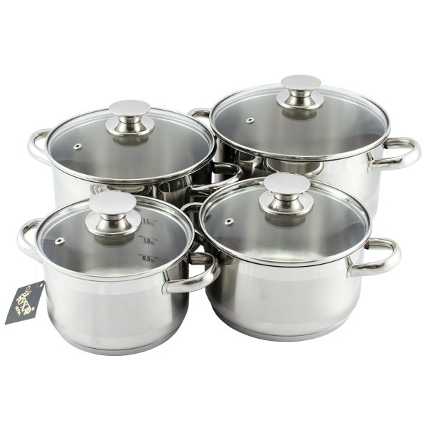 Набор «КУХАР»®. Кастрюли: 1.8л, 2.0л, 3.0л, 4.0л. Толщина стенок 0.6мм. Толщина дна 4.9м