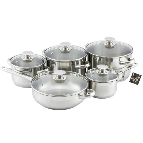 Кастрюли: 1.8л, 3.0л, 4.0л; сковорода: 2.8л; ковш: 1.0л. Толщина стенок 0.6мм. Толщина дна 4.9м