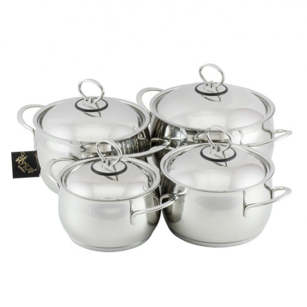 Набор «КУХАР»®. Кастрюли: 1.8л, 2.5л, 3.5л, 4.5л. Толщина стенок 0.6мм. Толщина дна 4.9м