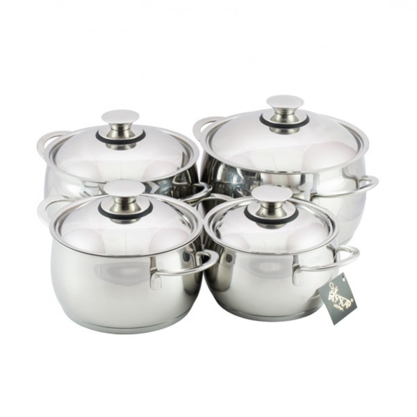 Набор «КУХАР»®. Кастрюли: 1.8л, 2.5л, 3.5л, 4.5л. Толщина стенок 0.6мм. Толщина дна 4.9м