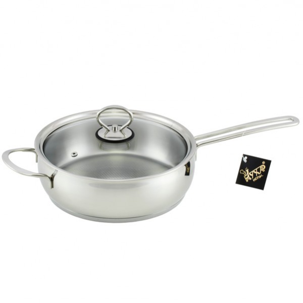 Толстое трехслойное дно. Для того чтобы обеспечить возможность комфортного использования кастрюли без пригорания продуктов, в частности густых блюд (каш, варенья), необходимо обеспечить хорошее распределение тепла от источника нагрева по всему дну кастрюли. Для этого в дно посуды помещается алюминиевый диск, ведь алюминий имеет гораздо лучшую теплопроводность, чем нержавеющая сталь. В посуде «КУХАР» части дна скрепляются между собой методом диффузионной сварки, что позволяет избежать образования полостей по краям дна и попадания туда воды и грязи.