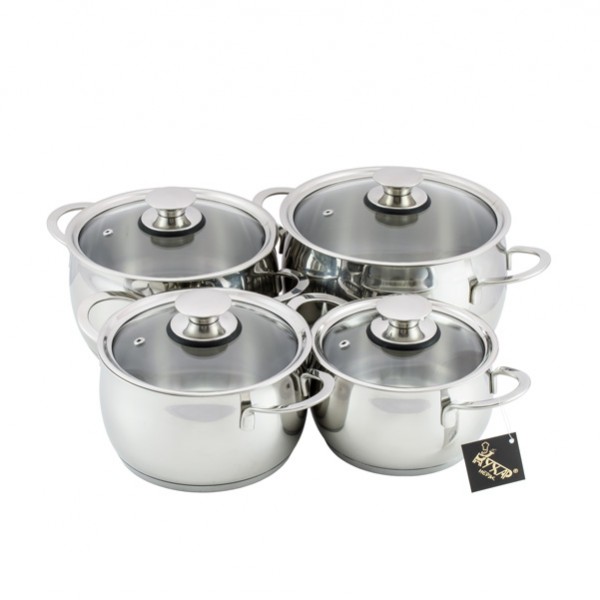 Набор «КУХАР»®. Кастрюли: 1.8л, 2.5л, 3.5л, 4.5л. Толщина стенок 0.6мм. Толщина дна 4.9м
