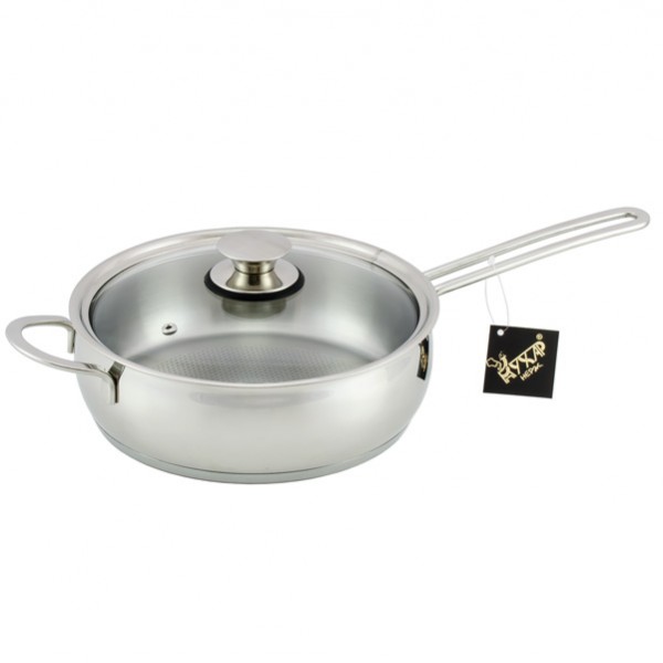 Сковорода «КУХАР»®. Объем 3.0л. Диаметр 24см. Высота 7.8см. Толщина стенок 0.6мм. Толщина дна 4.9мм.